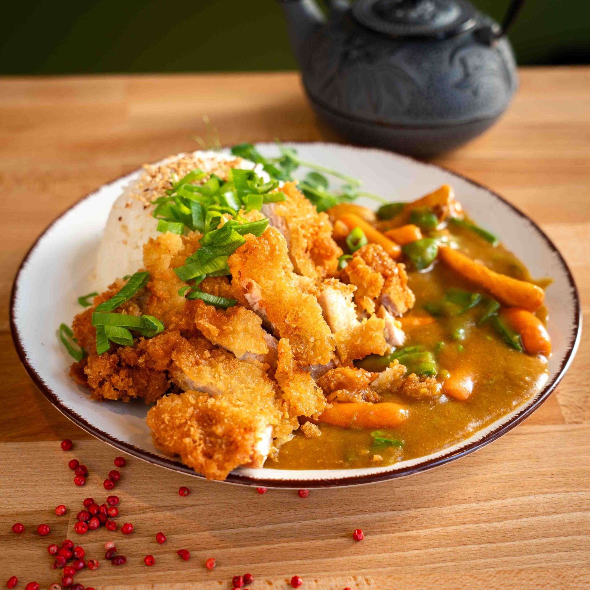 Delikatnie pikantne curry na bazie mleczka kokosowego z trawą cytrynową, liściem kafiru, groszkiem cukrowym, marchewką i sokiem z limonki. Podawane z ryżem, ćwiartkami ziemniaczanymi w przyprawach i zieloną cebulką. Do wyboru: krewetki lub smażony kurczak.