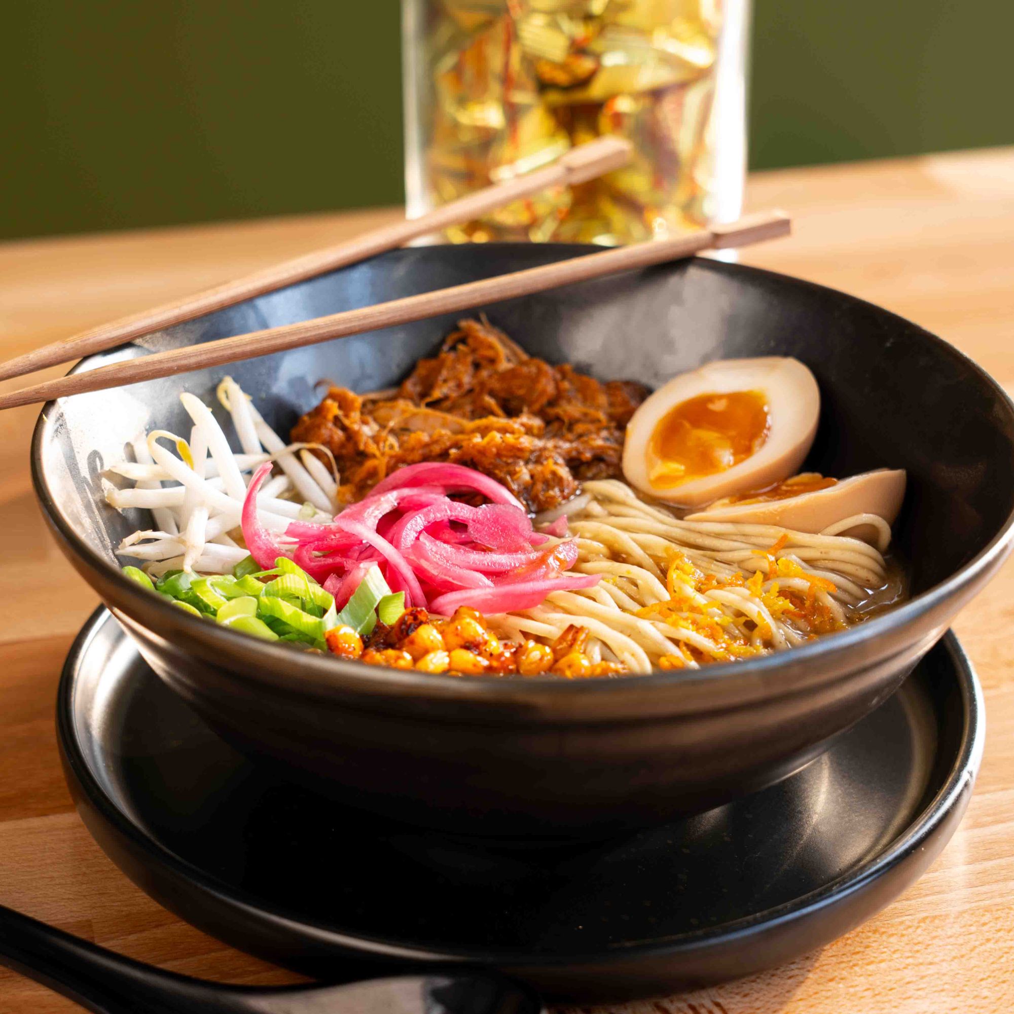 - Shoyu - długo gotowany bulion wieprzowo-drobiowy z głębią dojrzewającego sosu sojowego